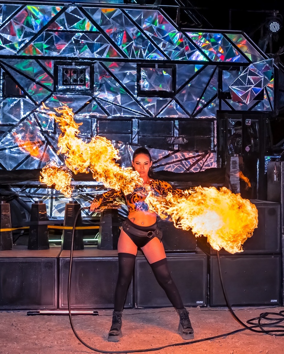 Little Wolf's fire shows have lit up music festivals, private celebrations, luxury resorts, restaurants, nightclubs, weddings, cultural events, and much more. Her artistry has been captured not only on stage, but also on screen. Working closely with directors and creative teams, she has been featured in multiple music videos, always enhancing her energy, skills, and impact on each production.